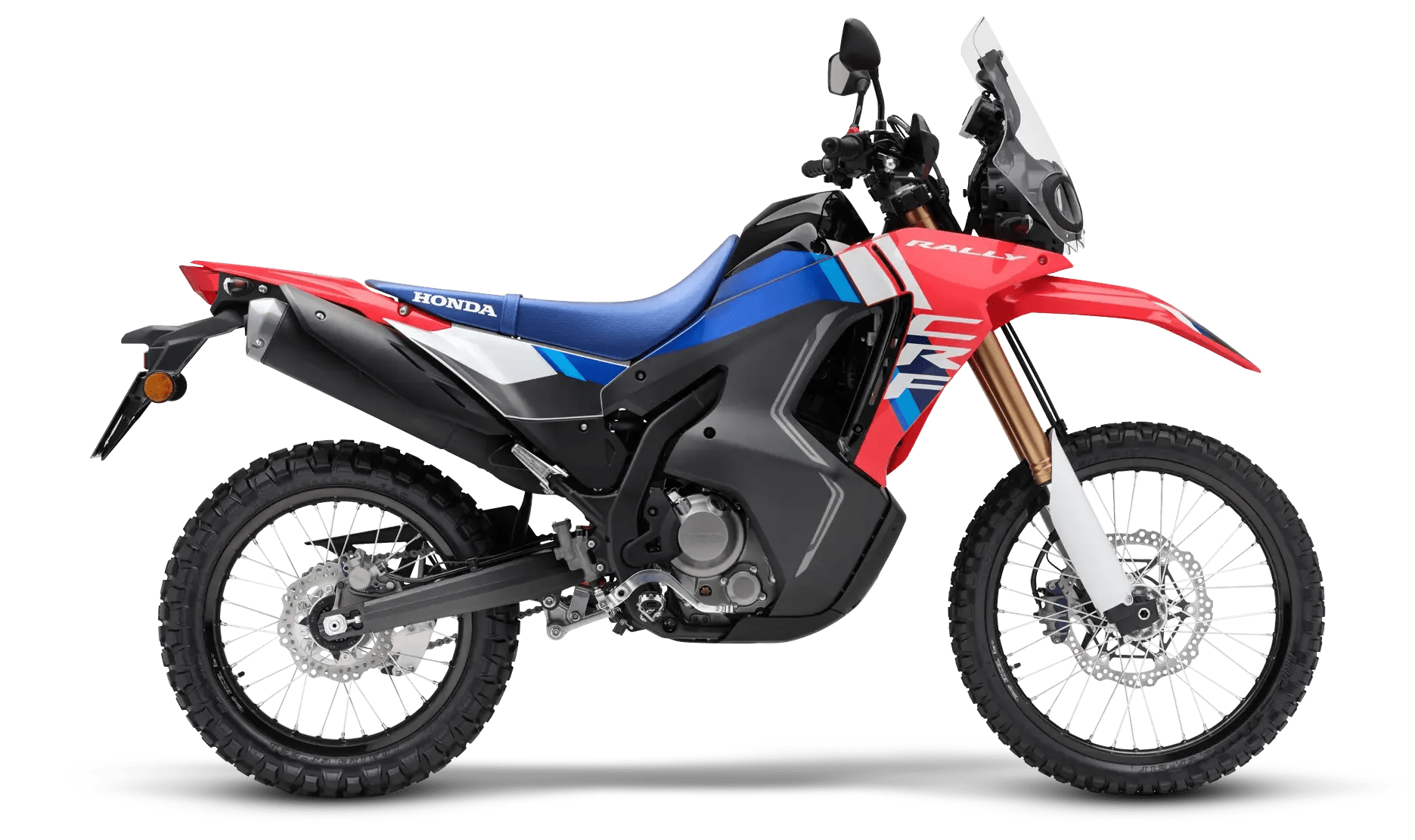 La Honda CRF 300 Rally está diseñada para quienes buscan libertad total dentro y fuera del camino. Su estética inspirada en el Dakar, junto con una altura elevada, amplio recorrido de suspensión y tanque extendido, la convierten en una moto ideal para viajes largos, terrenos difíciles y exploración sin límites.
