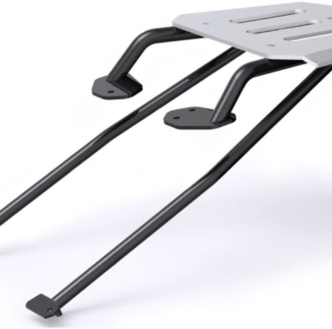 Su superficie plana en la parte superior permite instalar un top case sin romperlo y es reforzada en su estructura para evitar fallos comunes en este tipo de herrajes de moto.