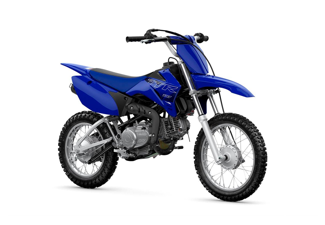 La gama de vanguardia TT-R de Yamaha incluye la TT-R110E, de hermoso diseño, dedicada a los principiantes y a quienes se gradúan con las motos más pequeñas. Su carrocería original estilo motocross color azul carrera está inspirada directamente en nuestras motos de carreras YZ ganadoras de grandes premios de motocross. Para facilitar la conducción y lograr altos niveles de comodidad del conductor, está bonita moto juvenil cuenta con suspensión delantera y trasera de carrera larga.